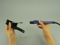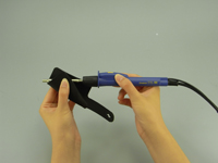 Connectable to a handpiece holder to control the air. Connect HAKKO FM-206 and the handpiece holder with a relay cord to turn off the air automatically when the handpiece is placed in the handpiece holder.