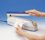 รหัสสินค้า : HFV802-01สินค้า : FV-802-01 (100V)ประเภท : เครื่องซีลพลาสติกรายละเอียด :- เครื่องซีลพลาสติก แข็งแรง ทนทาน เหมาะสำหรับการซีลพลาสติก- Compact portable sealer functioning both as adhesion heater and as cutting heater ![]() ![]() Featuring both adhesion and cutting with a single unit Sealing width 1.6mm, length of 200mm, approval thickness total 0.2mm -HAKKO FV-801 is applied sealing length of 350mm. -HAKKO FV-803 is compact and available for max. thickness 0.4mm. HAKKO FV-802 can be used for adhesion or cutting depending on the application. Applicable to various fields Perfect sealing is enabled by a simple operation. Usage/Application Operating Procedure ![]() Set the heating time adjusting knob according to the material and thickness of the package film, and adjust the sealing position. ![]() Push down the handle.For approximately 2 seconds, recommendable knob position is 6. ![]() Cutting ![]() After the red pilot lamp turns off, wait for a cooling time of 1 to 2 seconds and then raise the handle. Operating Procedure